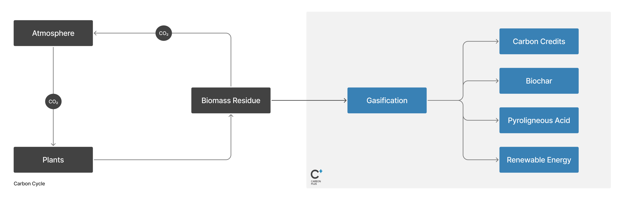 We produce biochar and pyroligneous acid, generate renewable energy, and create verifiable carbon removal credits—managing the full carbon credit lifecycle and delivering customized solutions.